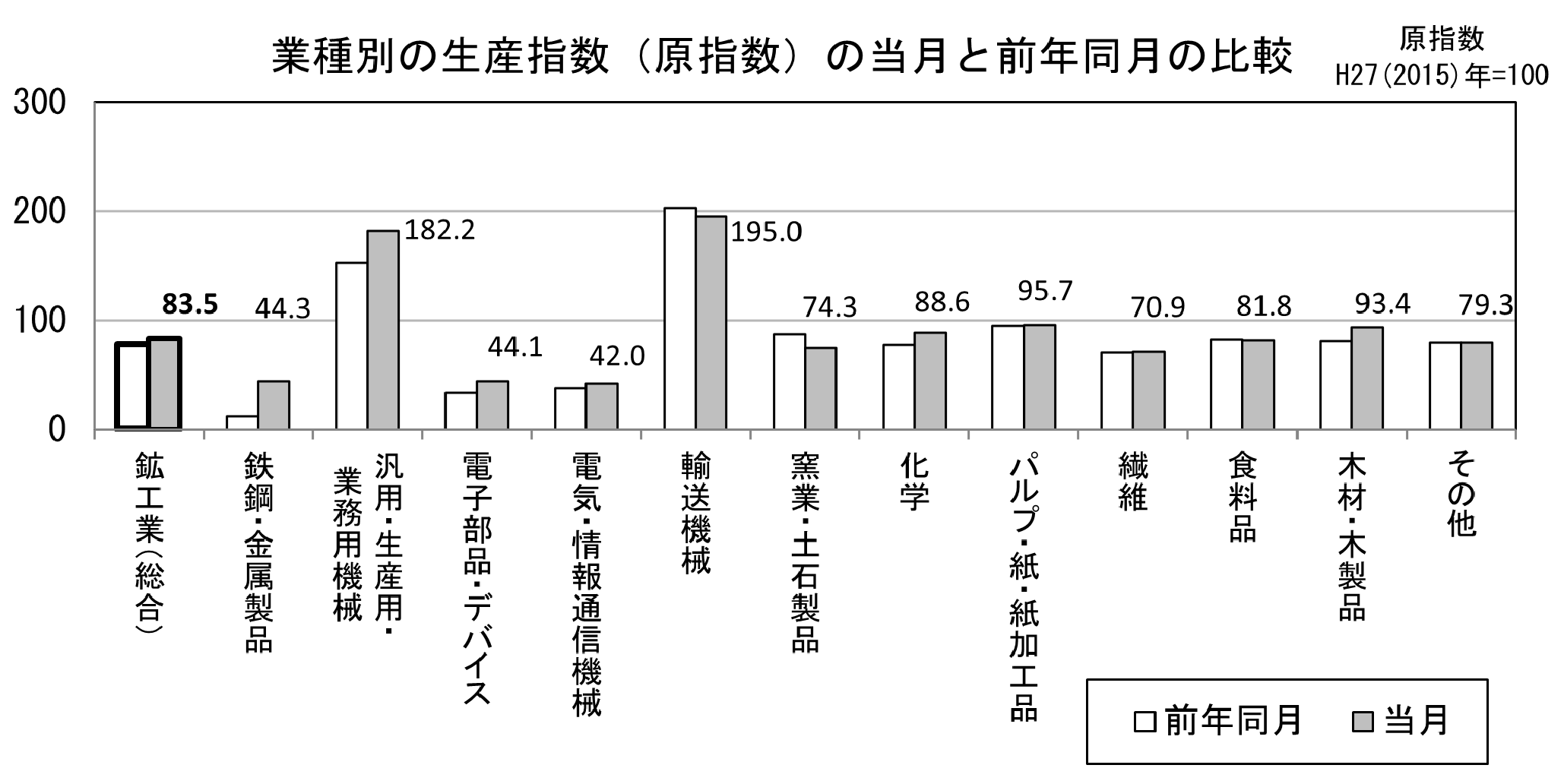 原指数は、83.3で、前年同月比0.8%上昇(12か月ぶりの上昇)